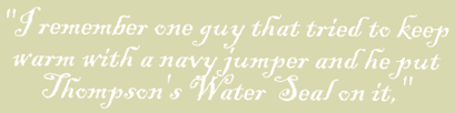 beaver-tailed jacket wetsuits. "I got a lot of laughs," remembers