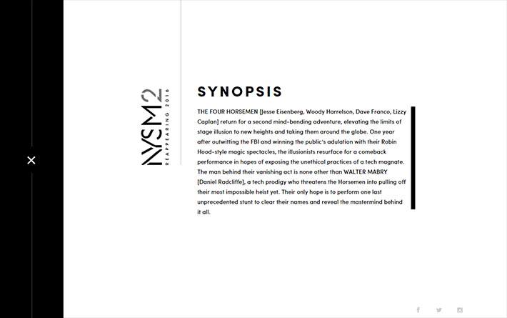 Experimental WebGL scrolling experience Website for The Now You See Me 2 Movie. Scroll through various scenes from the movie artistically re-created in WebGL.